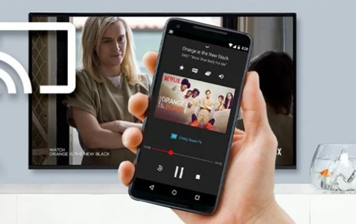 3. جهاز Chromecast: تحقق ما إذا كانت شاشة تلفازك تدعم جهاز Chromecast، فإذا كان جهازك يدعم هذه الخاصية قم بتوصيل الشاشة الذكية وهاتفك الأندرويد بشبكة واي فاي واحدة، ثم انقر على رمز الإرسال في التطبيق، ولتحديد الجهاز المتوافق الذي تريد بث مشاركة وعرض المحتوي عليه.