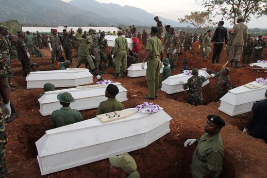 نظمت تنزانيا امس “جنازات وطنية” لضحايا حادث انفجار ناقلة للوقود فى مدينة “موروجورو” الواقعة شرقى البلاد، الذى أسفر عن مقتل 69 شخصا على الأقل وإصابة 70 آخرين.
