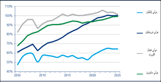 - انخفاض حجم الواردات من منتج البولي إيثيلين الخطي منخفض الكثافة بنسبة 5%، لتصل إلى حوالي 1.7مليون طن فقط، ترافق ذلك مع زيادة الإنتاج المحلي بنحو 2%، ليصل إلى حوالي 2.3 مليون طن.