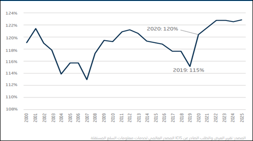 إلا أن هذا الارتفاع لم يستمر طويلاً، وعاودت الأسعار انخفاضها نسبيا مع قرب انتهاء النصف الأول من عام 2021، بما في ذلك المنتج في دول منطقة الخليج العربي، على النحو المبين في الشكل (1). وكان ذلك نتيجة زيادة المعروض من دول منطقة الشرق الأوسط، وبدء عودة إنتاج أمريكا الشمالية إلى المعدلات الطبيعية بشكل تدريجي. كما ساهم الوضع الصحي الخطير نتيجة تفشي وباء كوفيد-19 في الهند، إلى إعادة توجيه كميات من البولي إيثيلين المخصص لها، إلى أسواق أخرى.